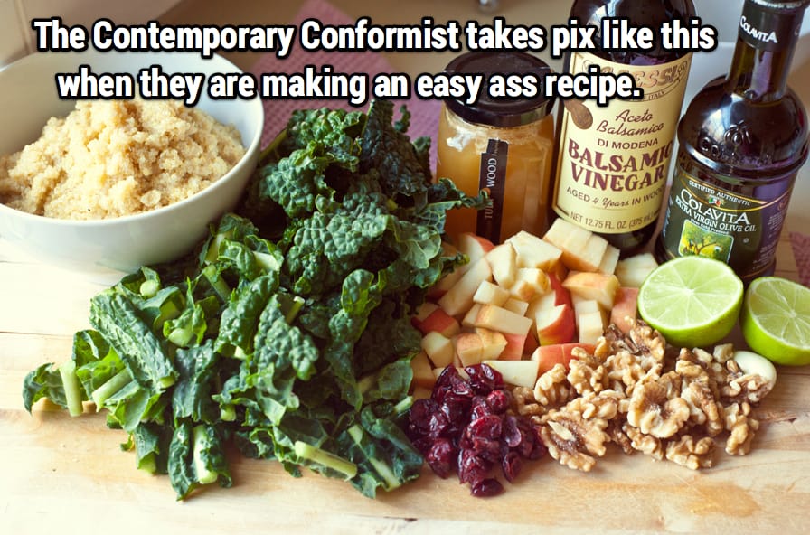 The Contemporary Conformist believes that they are ‘progressive’, while they are actually only ‘of the times’ [via contemporary]. Our times are currently a retro-vintage-urban-modern-artisanal lusting time. The Contemporary Conformist uses his/her consumer identity to rationalize post-youth-culture existence, transitioning to quirky take a ‘well-adjusted, healthy, and decently earning’ couple...